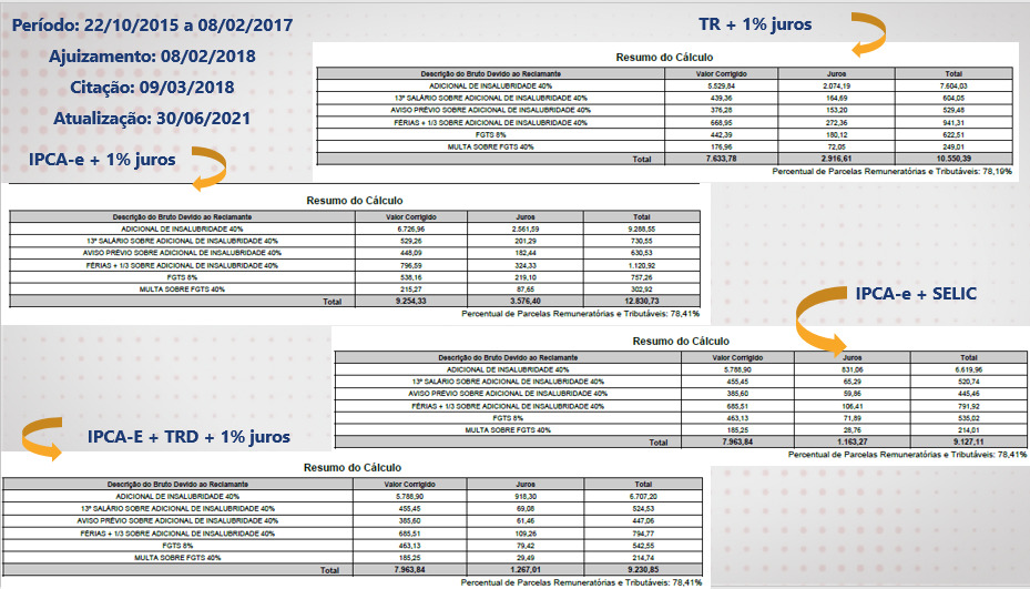 Sendo assim, para entendermos de forma objetiva os impacto deste novos entendimento será necessário o refazimento dos cálculos do processo da base trabalhista, uma vez que não é possível definir um índice de diferença para aplicar nos cálculos existentes.