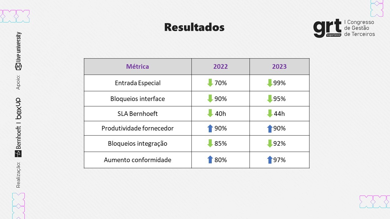 No GRT Experience, primeiro Congresso de Gestão de Terceiros do Brasil, Luis Seixas, Sourcing Coordinator da Sylvamo, apresentou as métricas atuais após o trabalho realizado em parceria com a Bernhoeft: